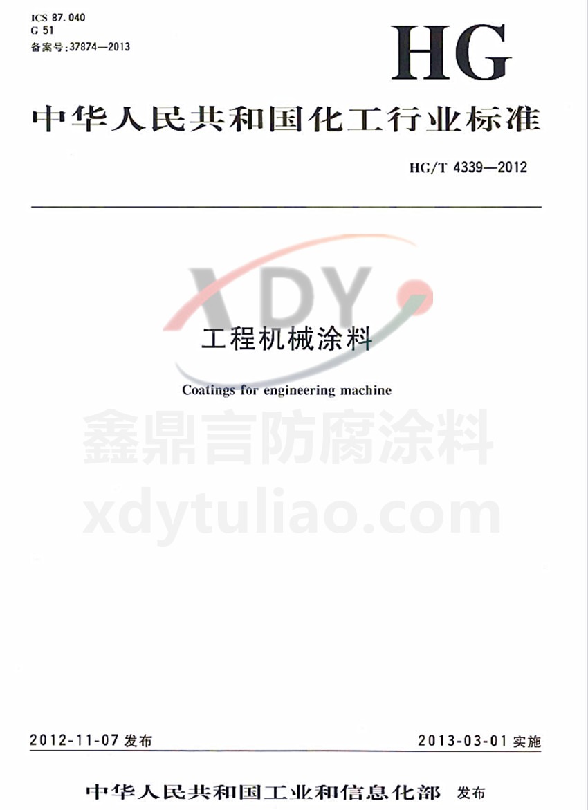 HG/T 4339-2012工程機械涂料標準ICS87.040 G51 備案號:37874-2013 HG 中華人民共和國化工行業(yè)標準 HG/T 4339-2012 工程機械涂料Coating for engineering machine 2012-11-07發(fā)布 2013-03-01實施 中華人民共和國工業(yè)和信息化部 發(fā)布 本標準規(guī)定了工程機械涂料產(chǎn)品的分類、要求、試驗方法、檢驗規(guī)則、標志、包