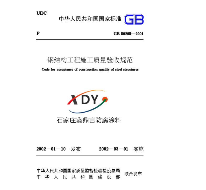 本文介紹了GB50205-2001鋼結(jié)構(gòu)工程施工質(zhì)量驗(yàn)收規(guī)范對(duì)于鋼結(jié)構(gòu)防腐涂料涂裝的表面處理要求,各類(lèi)防銹漆、底漆對(duì)應(yīng)的最低除銹等級(jí)及防腐涂料的涂層厚度、驗(yàn)收標(biāo)準(zhǔn)。專(zhuān)業(yè)的XDY鋼結(jié)構(gòu)防腐漆生產(chǎn)廠家石家莊鑫鼎言防腐涂料廠為您提供質(zhì)量?jī)?yōu)異,價(jià)格合理的XDY鋼結(jié)構(gòu)防腐涂料全系列產(chǎn)品。