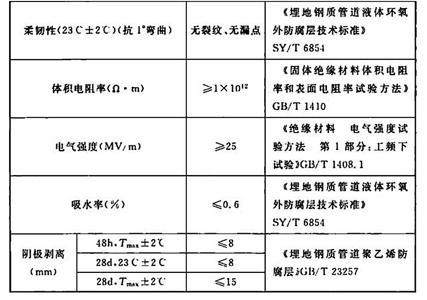 表2.2-1 液體環(huán)氧補(bǔ)口防腐層性能指標(biāo)(2A)