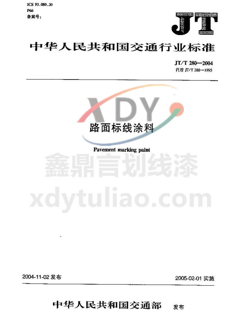 JT/T 280-2004路面標(biāo)線涂料標(biāo)準(zhǔn)
