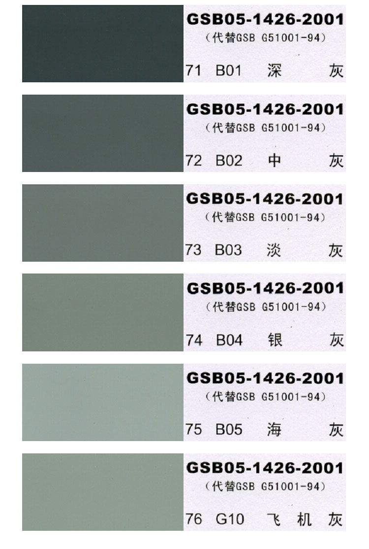 4、本國標色卡(GSB05-1426-2001)適用于定做博凱防腐涂料廠生產的XDY防腐漆系列:氟碳漆、石墨烯漆、納米漆、聚氨酯漆、丙烯酸漆、環(huán)氧面漆、氯化橡膠漆、氯磺化聚乙烯漆、高氯化聚乙烯漆等可調色防腐漆品種。