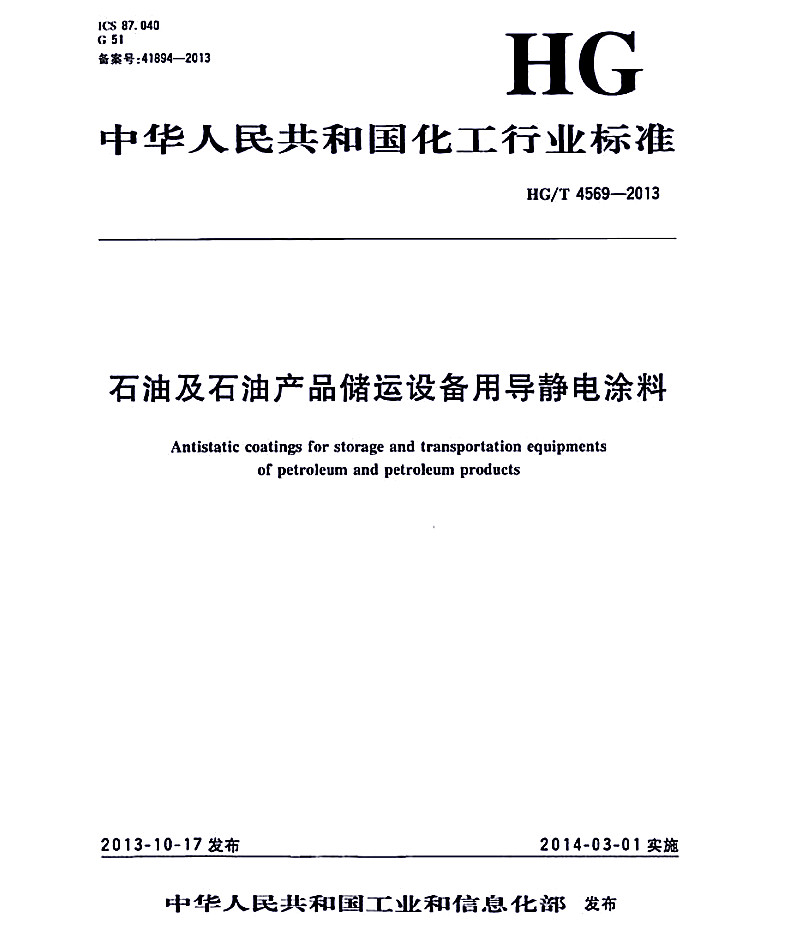 HG/T 4569-2013石油及石油產(chǎn)品儲(chǔ)運(yùn)設(shè)備用導(dǎo)靜電涂料標(biāo)準(zhǔn)